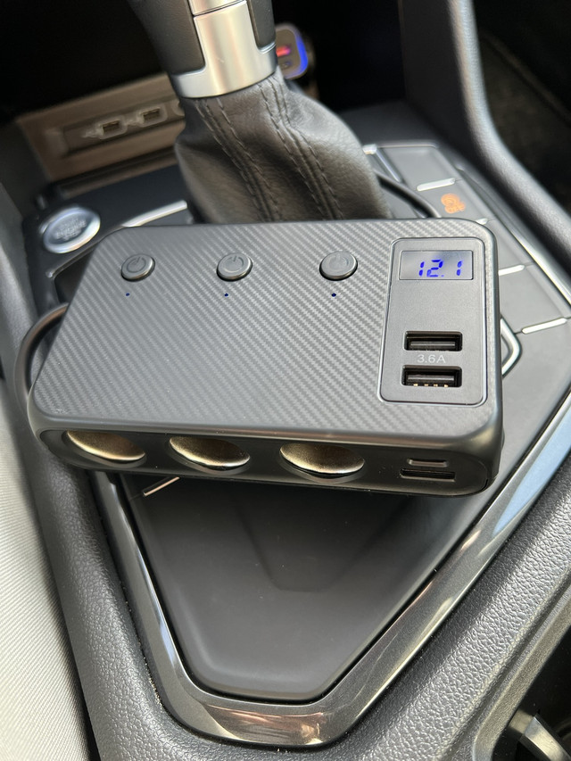 - Три гнізда типу "прикурювач" з індивідуальними (механічними) кнопками вмикання/вимикання кожного гнізда та світлодіодними індикаторами для кожного гнізда