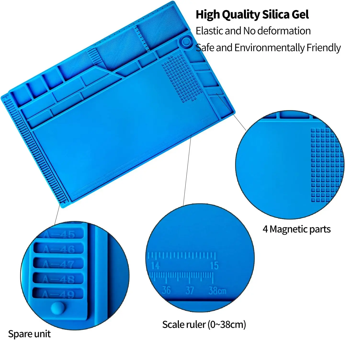 Великий силіконовий термостійкий килимок для паяння S-180A1. Захищає робочий стіл у процесі паяння, позаяк виготовлений із силікону високої якості та не деформується у разі впливу високої температури.