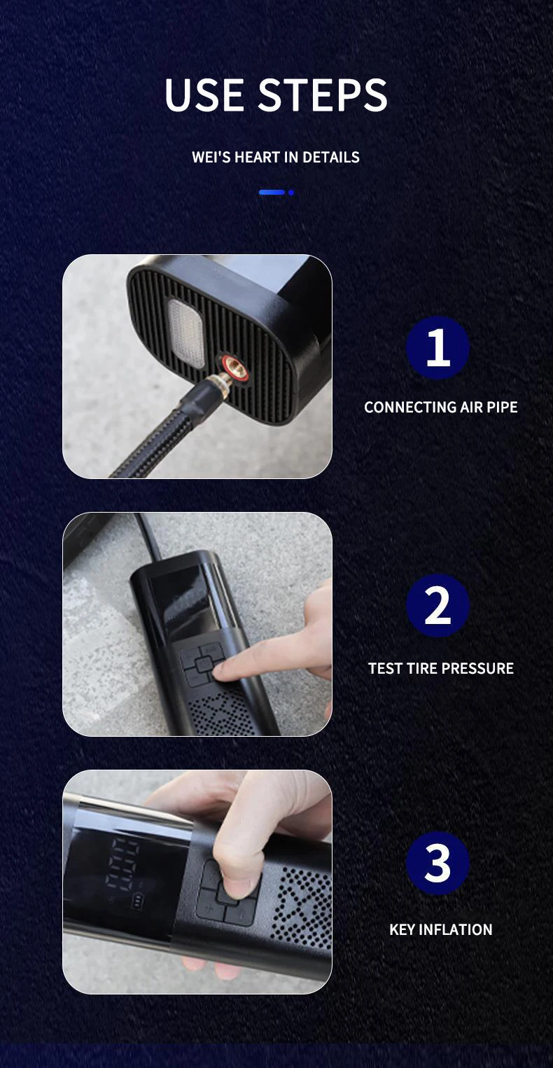Перевага цього автокомпресора в тому, що для використання його не потрібно під'єднувати до автомобільного акумулятора. Вбудований акб дасть змогу користуватися пристроєм незалежно від місця та додаткових джерел живлення.